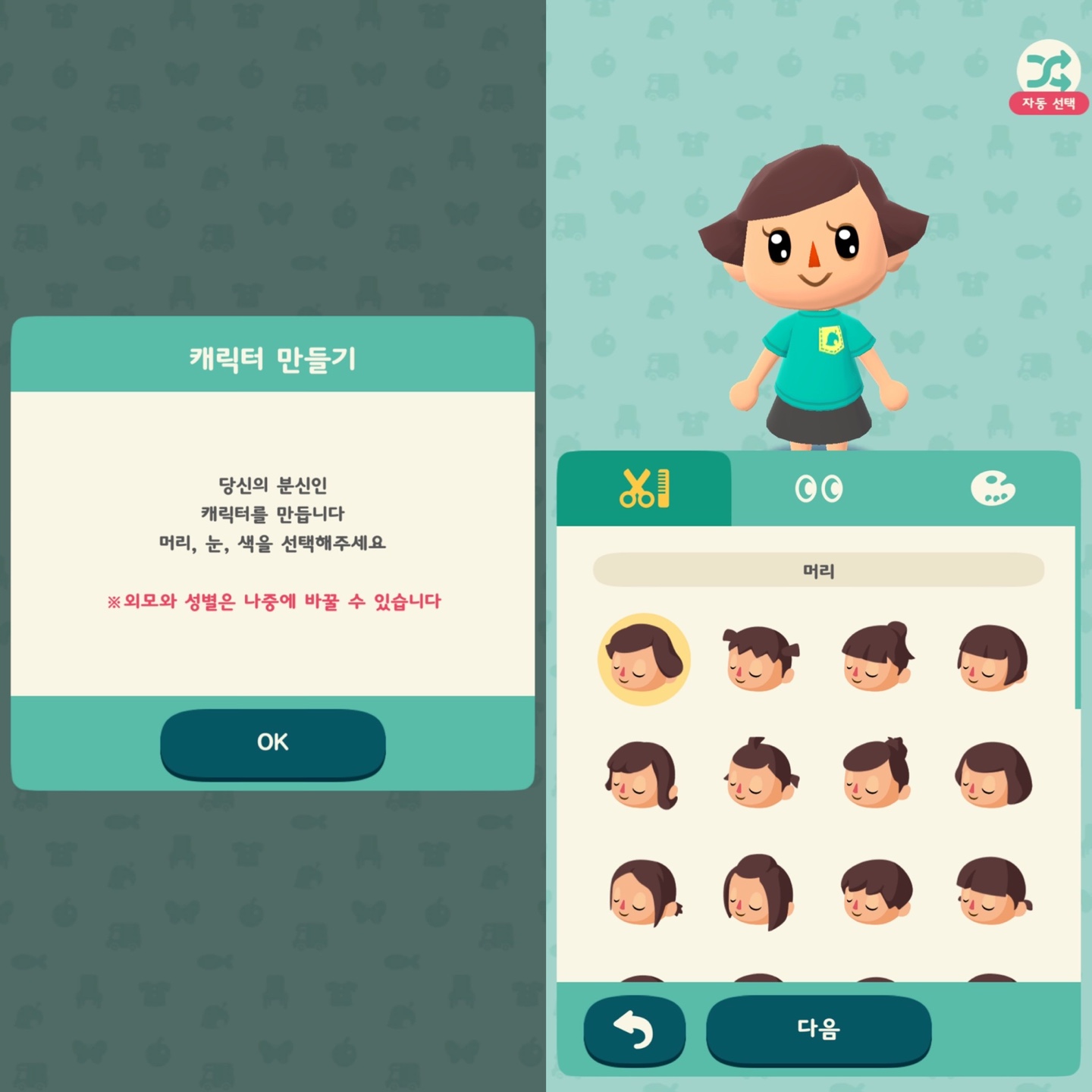 처음부터 시작할 경우 캐릭터를 만드는 것부터 시작되며 헤어와 눈코입 세트, 눈 색, 머리색을 지정할 수 있는데 이것들은 나중에 변경할 수 있기 때문에 오랜 시간 고민하여 만들 필요는 없다.